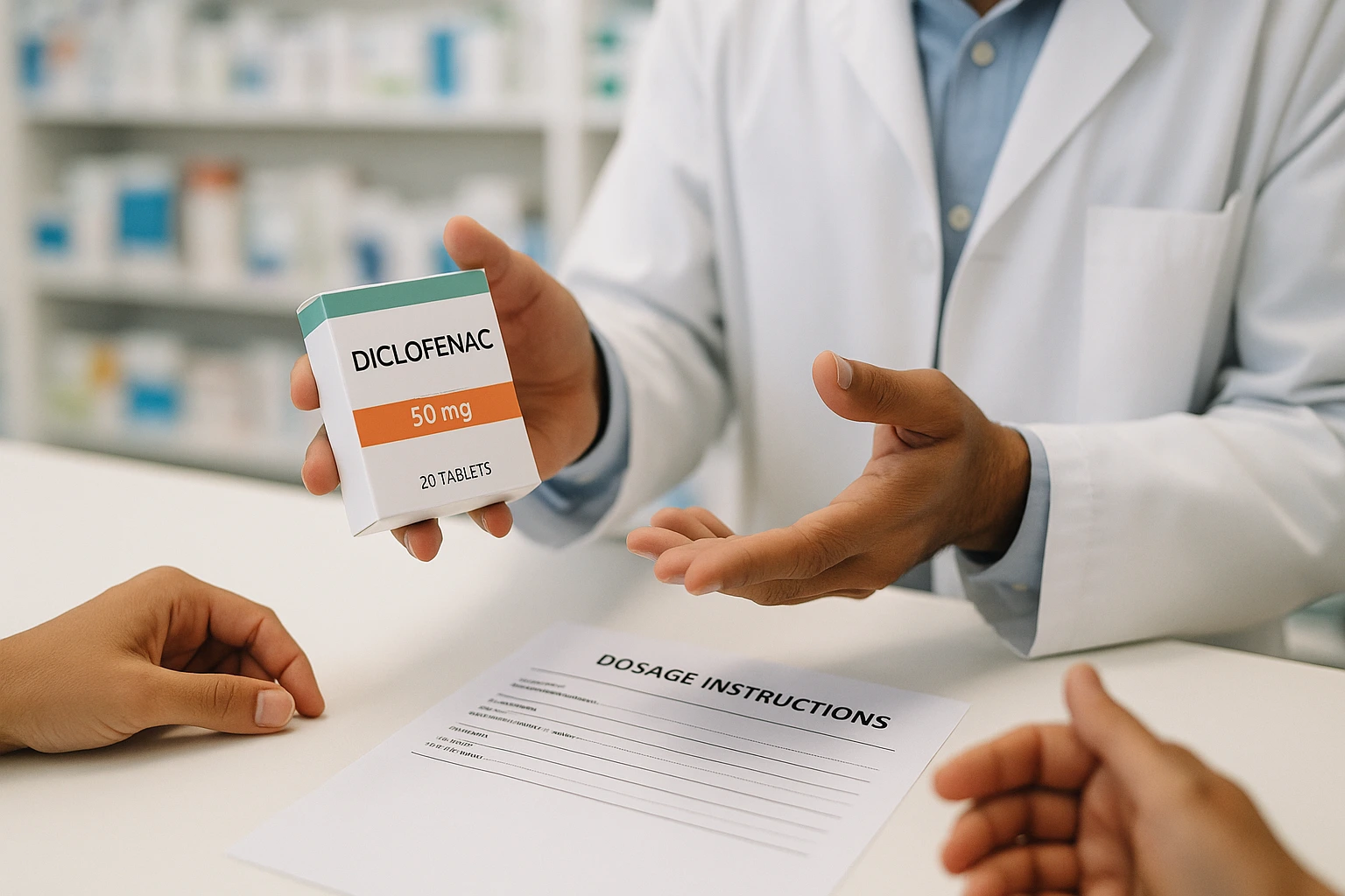 تجویز شکل دارویی دیکلوفناک (خوراکی، تزریقی یا موضعی) به نوع درد، شدت آن و وضعیت جسمانی بیمار بستگی دارد.